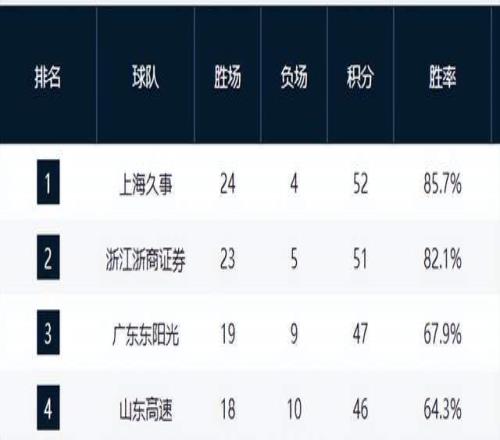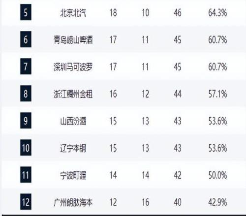 上海廣廈拉開差距,廣東暫列第3,山東第4不穩(wěn),8隊(duì)爭奪第12名