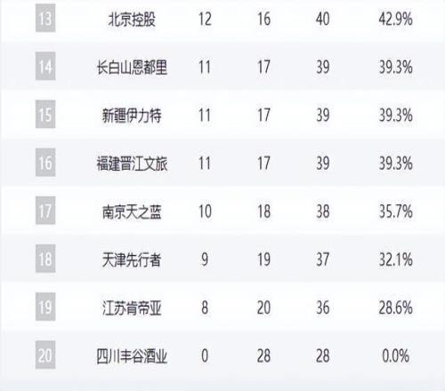 福建、同曦、天津、江蘇等隊(duì)仍在為最后一線生機(jī)拼殺,而四川隊(duì)至今未嘗勝績,0勝28負(fù)墊底,賽季已無懸念。