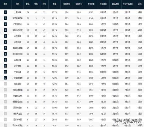 CBA最新排名:上海廣廈爭第一廣東前4不穩(wěn)中游球隊排名大亂