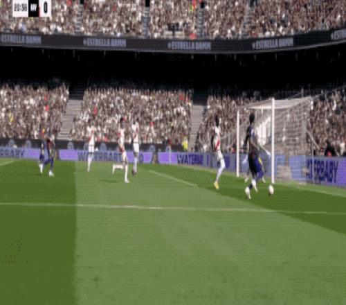 第57分鐘,巴薩快發(fā)前場(chǎng)任意球,費(fèi)蘭·托雷斯第一時(shí)間將球掃到門(mén)前,球速相當(dāng)快,拉菲尼亞飛鏟都沒(méi)能碰到皮球。