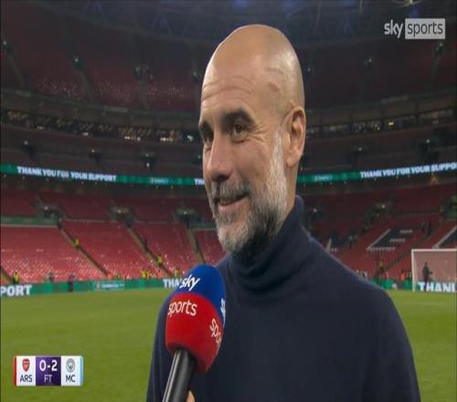 率隊(duì)在英格蘭聯(lián)賽杯決賽2-0擊敗阿森納成功奪冠之后,曼城主教練瓜迪奧拉接受了來(lái)自天空體育的采訪。