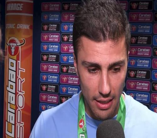 2026年英聯(lián)杯決賽,曼城2-0擊敗阿森納,賽后,曼城中場羅德里在混合采訪區(qū)接受了記者們的采訪。