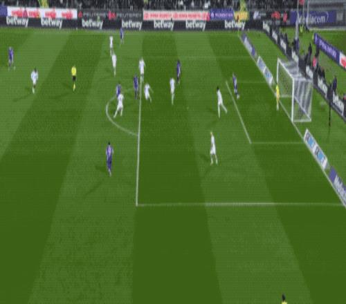 第33分鐘,盧克曼策動反擊并將球分到左路,魯杰里下底傳中,小西蒙尼腳后跟助攻,盧克曼打破僵局。