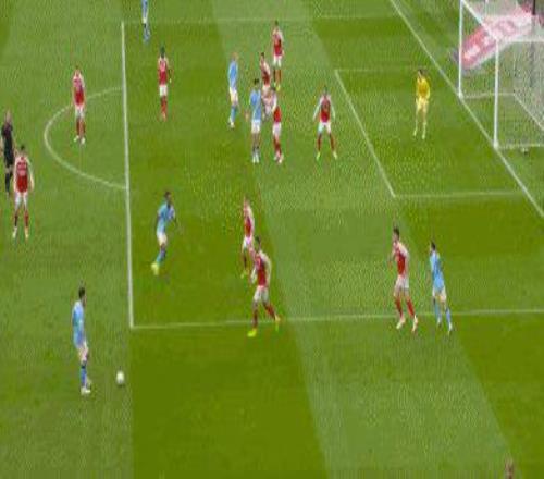 45’塞梅尼奧突破賴斯完成下底傳中,哈蘭德在本·懷特干擾下頭球頂高。