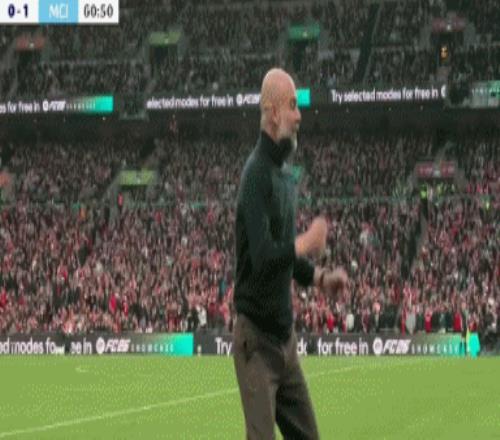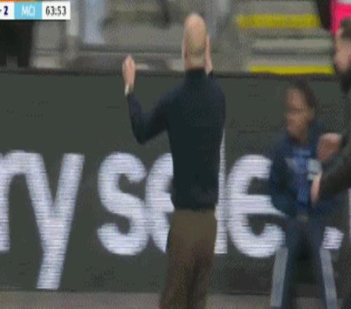 當(dāng)曼城在下半場(chǎng)第60分鐘依靠凱帕的脫手送禮,由奧萊利打破僵局時(shí)。一向儒雅的瓜帥也罕見(jiàn)激動(dòng),他振臂怒吼一躍而起,隨后激動(dòng)踹了場(chǎng)邊的廣告牌。