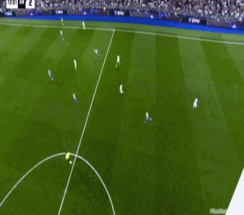 第41分鐘,卡瓦哈爾斜傳,楚阿梅尼甩頭攻門頂偏