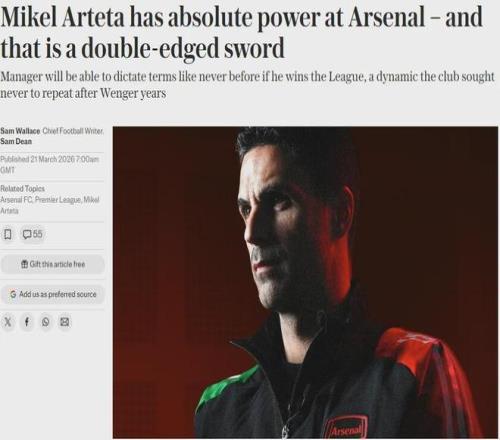 電訊報(bào)記者SW和SD聯(lián)合發(fā)文表示,阿爾特塔在阿森納擁有絕對權(quán)力,但這是一把雙刃劍。