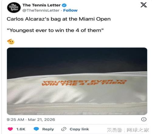 目前,阿爾卡拉斯的全部精力都放在邁阿密公開(kāi)賽上。但這一充滿(mǎn)爭(zhēng)議的標(biāo)語(yǔ)也提醒著人們:在網(wǎng)球世界里,歷史不僅關(guān)乎紀(jì)錄,更關(guān)乎視角。(來(lái)源:網(wǎng)球之家 作者:火花)