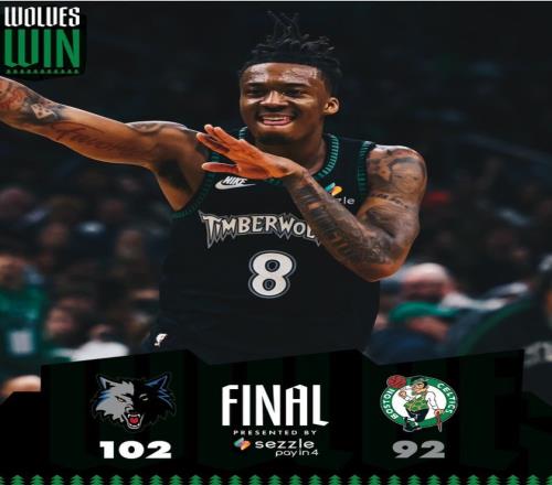北京時(shí)間3月23日,NBA常規(guī)賽,森林狼102-92大勝凱爾特人避免連敗。此役森林狼是逆轉(zhuǎn)大勝,他們?cè)诳蛨?chǎng)一度落后綠凱15分之多,好在第二節(jié)打出33-21的攻勢(shì),末節(jié)森林狼更是一波15-0直接拉開到12分打崩了綠凱。