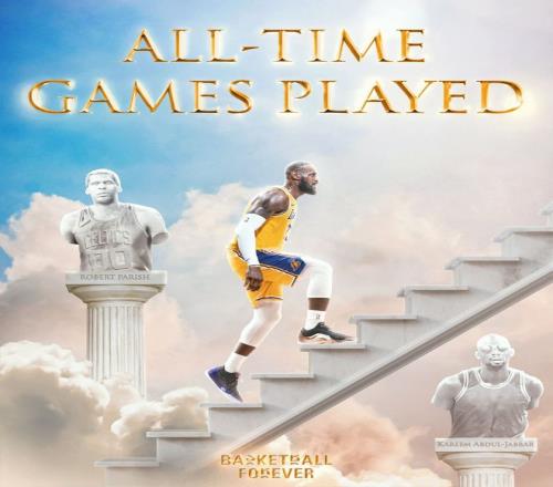 3月22日勒布朗完成1612場(chǎng)后NBA官方就將這項(xiàng)海報(bào)置頂了,歷史前十登場(chǎng)數(shù)里只有勒布朗一人是現(xiàn)役球員。