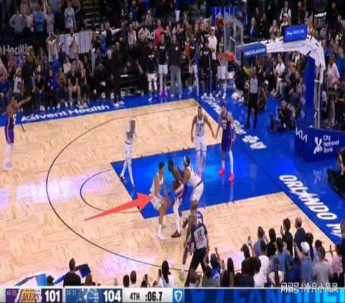 比賽還剩下29秒時,魔術(shù)發(fā)動進(jìn)攻,裁判報告指出艾頓在禁區(qū)未處于積極防守對手狀態(tài)下待的時間超過了3秒,應(yīng)該吹罰防守違例,魔術(shù)得到一次罰球機(jī)會。