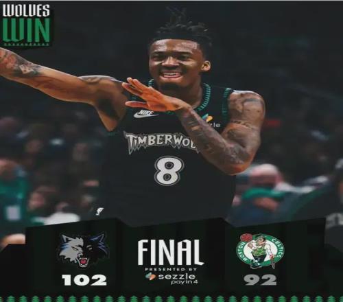 今日常規(guī)賽,森林狼以102-92掀翻凱爾特人,成功避免連敗之余,順手還打破了一段21年的魔咒。