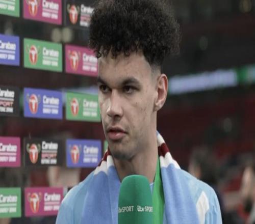 在英聯(lián)杯決賽2-0擊敗阿森納奪冠后,曼城后衛(wèi)尼科-奧賴?yán)邮芰薎TV的采訪。