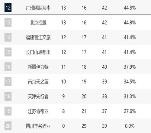 第12的競爭就非常激烈了。廣州這輪取勝之后,現在排在第12,不過北控這輪艱難擊敗浙江,他們和廣州的勝場是一樣的。福建最近的狀態(tài)非常好,吉林第三階段3勝3負,這兩支球隊落后廣州也就1個勝場。
