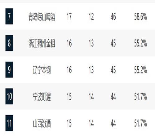 7-11分別是青島、浙江、遼寧、寧波與山西。青島和浙江這輪都輸球了,青島輸給了福建,核心還是下半場進攻沒有打開,被對手逆轉,反正球迷都看得莫名其妙。浙江則輸給了北控,內線還是太被動了。遼寧這輪逆轉同曦,布羅金頓的挖掘對球隊的提升是實質性的。寧波大勝新疆,展現了驚喜。至于山西這輪輸給廣州,核心還是迪亞洛不能打,隊內多人出現身體不適的情況。