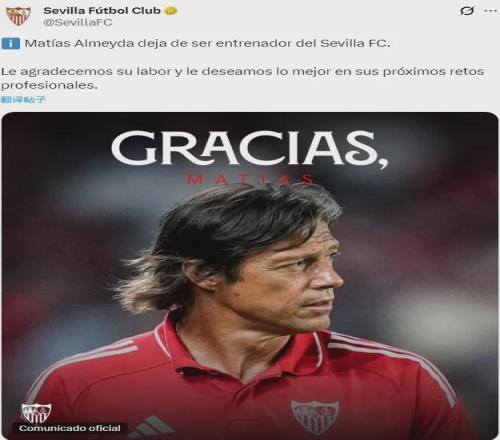 官方:塞維利亞宣布解雇了主帥馬蒂亞斯-阿爾梅達(dá),他們最近剛剛在主場0-2輸給了瓦倫西亞。
