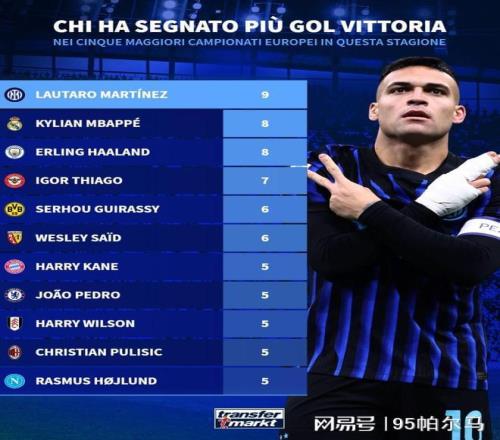 對(duì)陣科莫時(shí),國(guó)米居然全場(chǎng)只有3次射門(mén)&射正次數(shù)為0,當(dāng)思念是一種病時(shí),勞塔羅的個(gè)人價(jià)值順勢(shì)得到了升華,值得一提的是,在本賽季五大聯(lián)賽制勝球的次數(shù)上,勞塔羅(9次)將姆巴佩和哈蘭德兩位神鋒比下去了。
