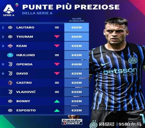 在最新一期意甲全隊(duì)身價(jià)排行榜上,總身價(jià)達(dá)7.43億歐元的國(guó)米坐穩(wěn)了頭把交椅,其中個(gè)人身價(jià)達(dá)到8500萬(wàn)歐的勞塔羅貢獻(xiàn)值最大,雖然暫時(shí)丟掉了億元先生的頭銜(巔峰時(shí)的自己1.1億歐元),一直在全力以赴地傾注熱情。