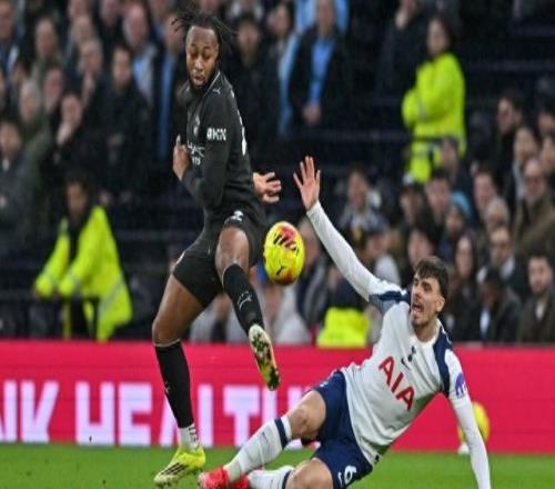 新華社照片,倫敦,2026年2月2日 2月1日,曼城隊(duì)球員塞門約(左)與熱刺隊(duì)球員帕利尼亞拼搶。 當(dāng)?shù)貢r間2月1日,在2025-2026賽季英格蘭足球超級聯(lián)賽第24輪比賽中,曼徹斯特城隊(duì)客場2比2戰(zhàn)平托特納姆熱刺隊(duì)。 新華社發(fā)