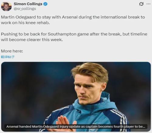 太陽報記者SC消息,厄德高在國際比賽日期間將留在阿森納繼續(xù)恢復(fù),這名中場已經(jīng)因膝傷缺席一個月之久。