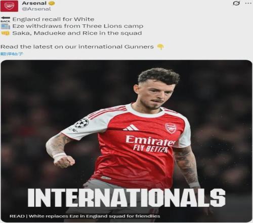 官方:懷特頂替小腿受傷的埃澤,入選了本場國家隊大名單,這也是2022年世界杯以來懷特首次入選英格蘭隊。
