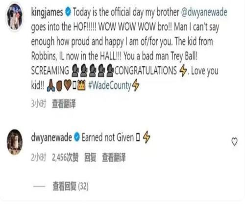 不過玩嗨了的詹姆斯沒忘記好兄弟韋德,他還在社媒上艾特了韋德,又祝賀了一番,表示了一下兄弟情深,圖片在下面,翻譯一下,大體上的意思就是,哇哇哇,兄弟,我無法用言語來表達我對你有多么高興和自豪,來自伊利諾伊州的孩子現(xiàn)在是名人堂巨星了,這是上天賜予你的榮耀,你這個壞家伙,我永遠愛你。