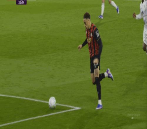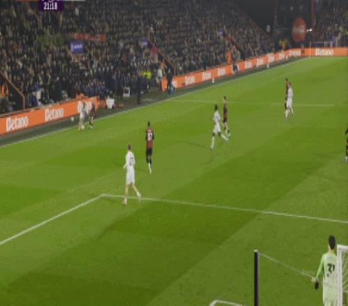 這個時候,曼聯(lián)想要打出優(yōu)勢,就需要找其中還能勉力維持的點位,這個點位就是庫尼亞,一方面他的確是比較全面,所以身體撐得住技術(shù)的基本發(fā)揮,另一方面就是他對位的伯恩茅斯右后衛(wèi)阿萊士-希門尼斯比較弱,所以在這個一對一里,曼聯(lián)可以打出優(yōu)勢,從而形成局勢上的平衡,甚至是反超: