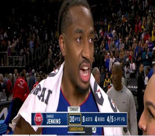 去年11月11日活塞打奇才,最后1秒,活塞落后3分,當時有約一半的球迷已經(jīng)提前退場了。然后,雙向球員詹金斯如天降奇兵,一記絕平3分將比賽拖入加時。