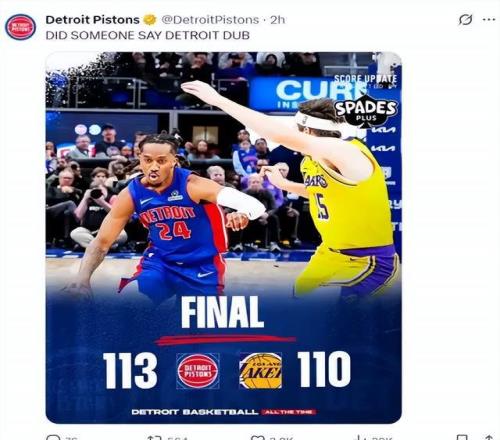 短短25秒時(shí)間里,詹金斯一人拿下關(guān)鍵6分,硬生生把比賽從湖人手中搶了回來(lái)。而反觀湖人一方,最后12秒東契奇急停中投失手,最后一攻的絕平三分更是直接三不沾。對(duì)比兩隊(duì)關(guān)鍵時(shí)刻的表現(xiàn),活塞取勝也就不難理解了。