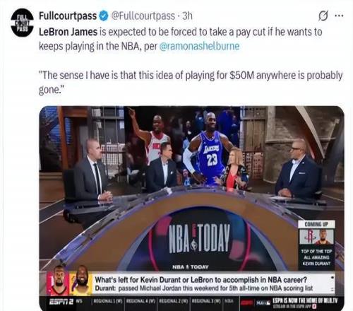 根據(jù)拉莫娜·謝爾伯恩報道,詹姆斯未來很可能會選擇降薪,放棄5000萬年薪,只為球隊能夠安全續(xù)約里夫斯,補強角色陣容。