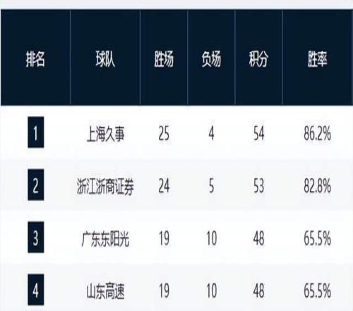 上海重回第1,山東追上廣東,遼寧第9,北京掉隊(duì),前總冠軍29連敗