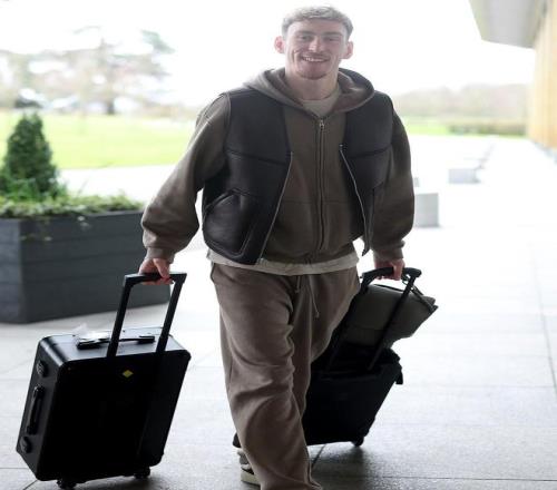 抵達(dá)基地的球員們大都神情輕松,拉什福德身穿英格蘭隊最新賽前熱身球衣,勒溫則選擇了一身極為休閑的裝扮,看起來仿佛是要出門去旅行。福登神態(tài)輕松,面對鏡頭微微一笑。