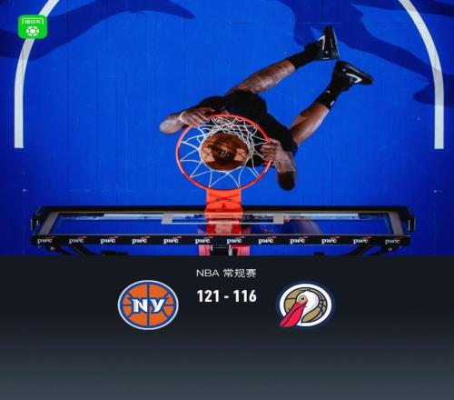 第四節(jié)尼克斯布倫森拿下15分,鵜鶘費爾斯拿下11分,最終尼克斯121-116戰(zhàn)勝鵜鶘