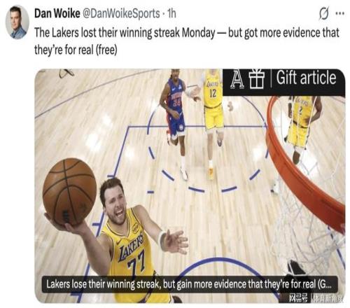 湖人隊資深記者丹·沃伊克(Dan Woike)發(fā)表了一篇題為《湖人連勝告終,卻為實力再添有力注腳》的文章,全文內(nèi)容如下: