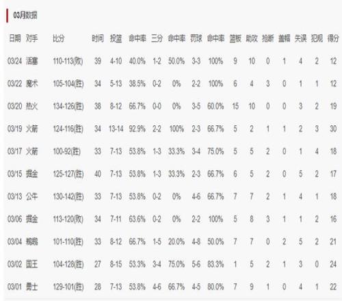 勒布朗-詹姆斯已經(jīng)連續(xù)11場(chǎng)比賽出手不超過(guò)15次,只有在3月2日對(duì)陣國(guó)王的比賽中出手了15次 ,3月19日對(duì)陣火箭的比賽中出手14次,其余的比賽詹姆斯的出手都在13次及以下。
