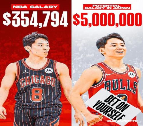 對比參考: 前NBA球員渡邊雄太目前效力于日本B聯(lián)賽的千葉噴氣機隊,稅后收入預計能達到500萬美元。據(jù)統(tǒng)計,這相當于在NBA簽下了一份稅前年薪1200萬美元的合同。