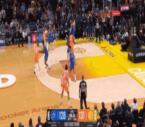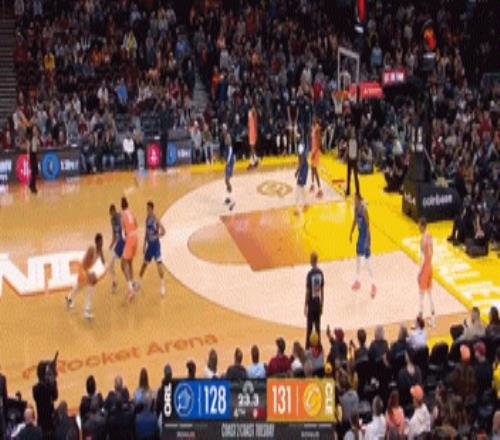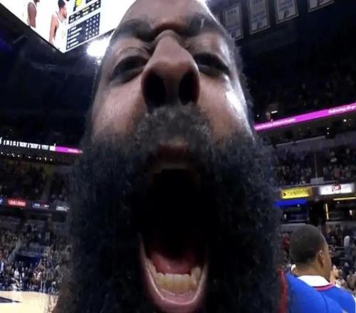 中場(chǎng)結(jié)束前,哈登還玩了手壓哨3+1!