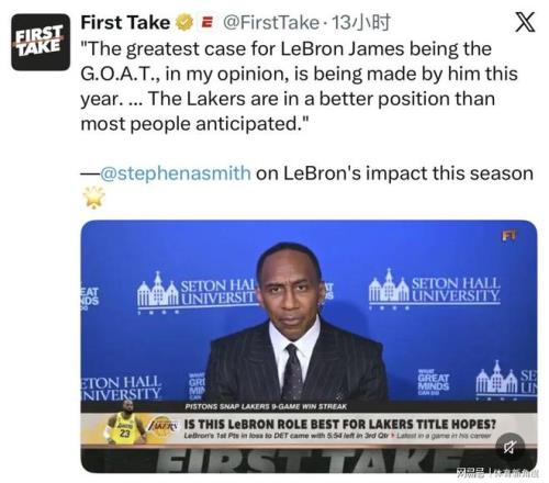 這不禁讓人疑惑,史蒂芬·A·史密斯是否真的被近期詹姆斯的卓越表現(xiàn)所折服?畢竟,他曾信誓旦旦地表示,這輩子都不會再喜歡詹姆斯,甚至在去年8月還放言:“即便余生都不再與詹姆斯交談,對我而言也毫無影響?!?/p>