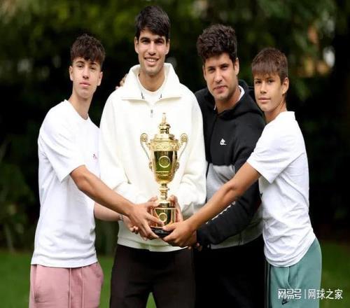 “阿爾卡拉斯”家族四兄弟慶祝阿卡奪得溫網(wǎng)冠軍,從左至右分別是老三塞爾吉奧、老二卡洛斯、老大阿爾瓦羅和老四海梅