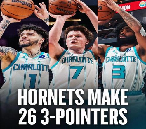 ——26記三分追平了黃蜂的隊史單場三分紀錄,而且此前的紀錄就發(fā)生在10天前,面對馬刺,黃蜂單場三分46中26