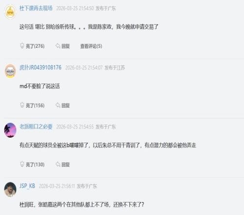 這種情況下,記者在賽后發(fā)布會(huì)的時(shí)候幫助球迷問(wèn)到了這一點(diǎn),記者表示:陳家政是否會(huì)獲得更多機(jī)會(huì)。杜鋒好像有點(diǎn)急了,可能是在不滿(mǎn)其他人對(duì)其指手畫(huà)腳?