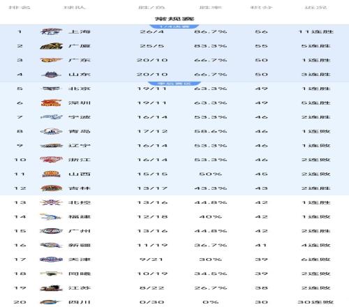 CBA積分榜一夜大變:上海11連勝,遼寧遭爆冷,廣東送四川30連敗