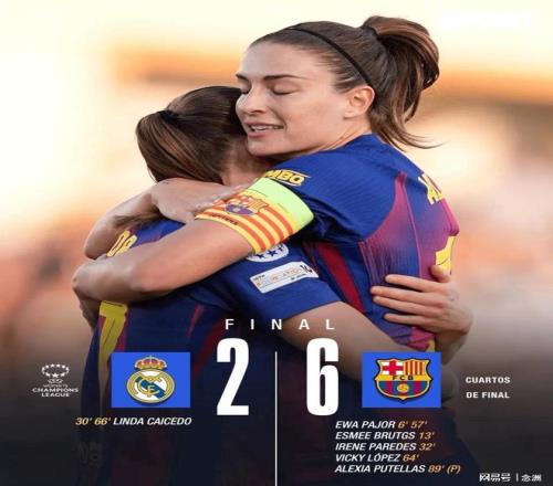 女足歐冠8強首回合,皇馬主場2-6不敵巴薩,巴薩方面,帕喬兩球,布魯格茨、帕雷德斯、維姬·洛佩斯破門,普特拉斯點射?;蜀R方面,琳達-凱塞多雙響,但難挽敗局。