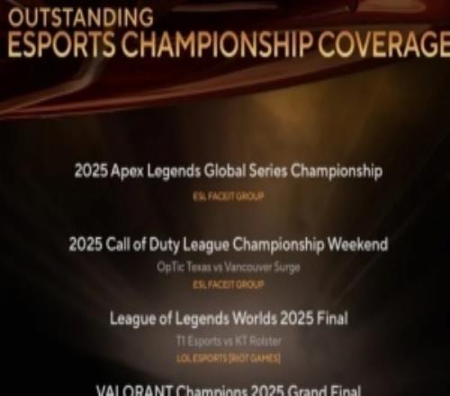 第47屆體育艾美獎(jiǎng)提名:S15決賽、巴黎全球冠軍賽決賽等入圍
