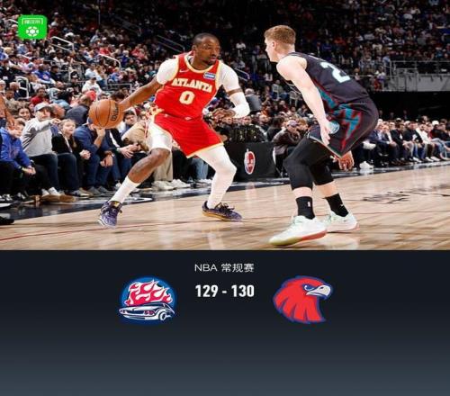 加時賽活塞托拜厄斯-哈里斯拿下2分,老鷹杰倫-約翰遜拿下4分,最終活塞129-130不敵老鷹