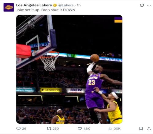 北京時(shí)間3月26日,NBA常規(guī)賽,湖人以137-130擊敗步行者。這場(chǎng)比賽41歲高齡的勒布朗-詹姆斯再度打出了一場(chǎng)‘反常識(shí)’的現(xiàn)象級(jí)表演,隔扣2次胡夫、隔扣內(nèi)姆布哈德,歐洲步晃暈西卡+內(nèi)史密斯,全場(chǎng)球迷都在為41歲的老漢歡呼,全場(chǎng)比賽勒布朗23+9+9。