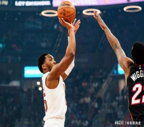 暫?;貋砗?,哈登持球突破,巧妙地分球給處于大空位的梅里爾。梅里爾接球后,毫不猶豫地起跳投籃,三分球應聲入網(wǎng),為騎士隊止住了頹勢。然而,熱火隊的希羅毫不示弱,他迅速做出回應,一個撤步三分跳投,籃球劃過一道漂亮的弧線,精準落入籃筐。