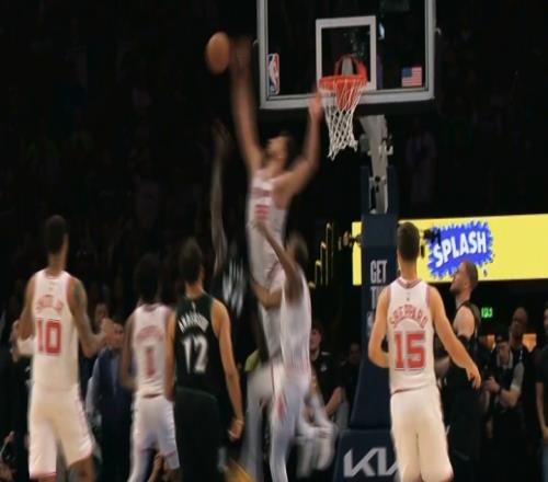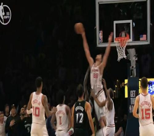 火箭森林狼比賽常規(guī)時(shí)間最后時(shí)刻,森林狼發(fā)球前犯規(guī),杜蘭特罰球追平,隨后握有絕殺機(jī)會(huì),但傳球失誤,森林狼反擊,申京回防高高躍起血帽扇出蘭德?tīng)柕纳匣@,拯救比賽,將比賽拖入加時(shí)。