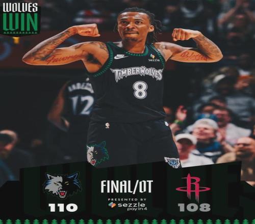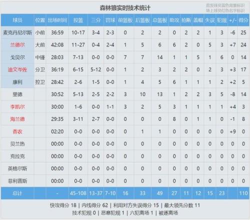 杜蘭特第2罰故意不中,籃板球被小香農(nóng)打出底線。1.1秒火箭底線發(fā)球,被小香農(nóng)破壞。全場結(jié)束,森林狼主場110-108險勝火箭。第四節(jié)最后3分鐘和加時賽的前2分鐘,火箭一共轟出26-2的攻擊波。加時最后3分鐘,被打了15-0!