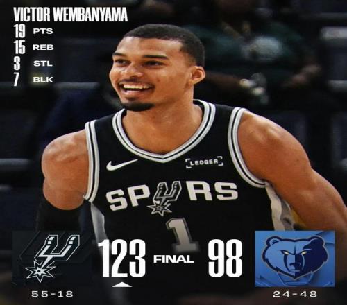 常規(guī)賽,馬刺客場123-98戰(zhàn)勝灰熊。
